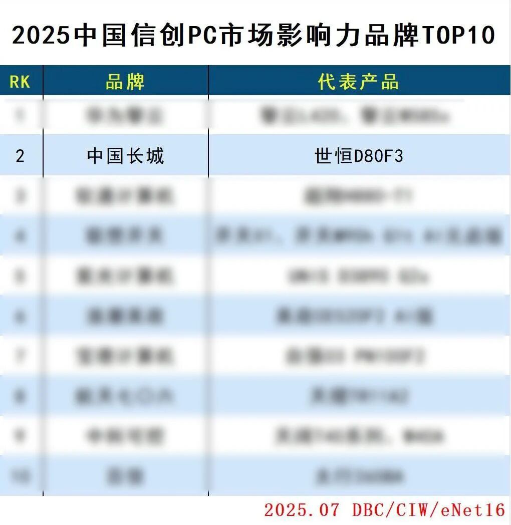 2025中國(guó)信創(chuàng)PC市場(chǎng)影響力品牌TOP10發(fā)布,中國(guó)長(zhǎng)城斬獲第二!